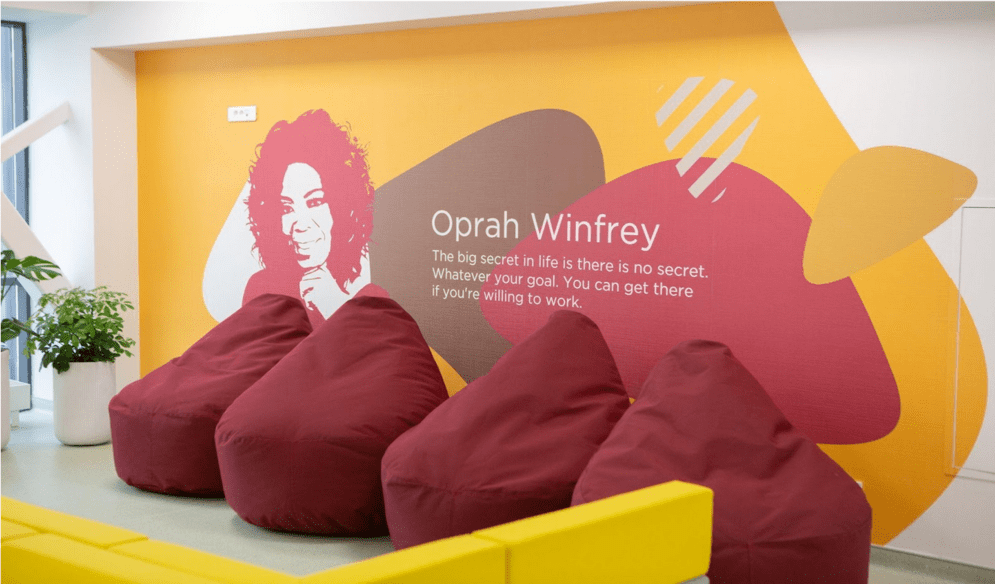Narxoz has created a unique photography wall on each floor, where the color scheme corresponds to the direction of education. Quotes from great people, chosen by students, decorate the walls, creating an atmosphere of attention and freedom.