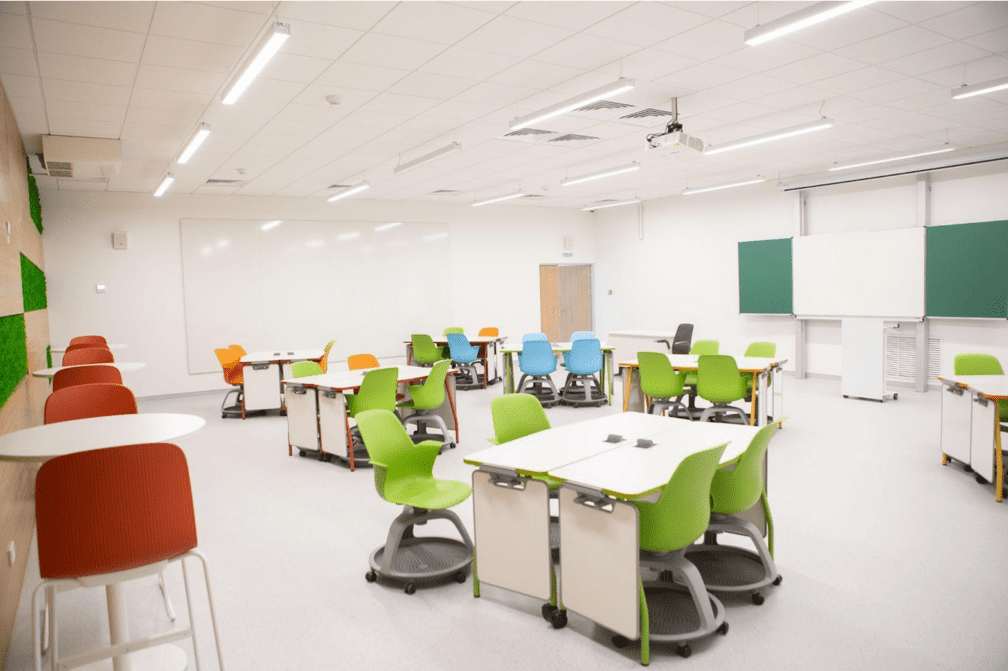 The auditorium is fully equipped with innovative Steelcase furniture, environmentally friendly, with VS board and Polyvision marker panels - a new generation interactive whiteboard.